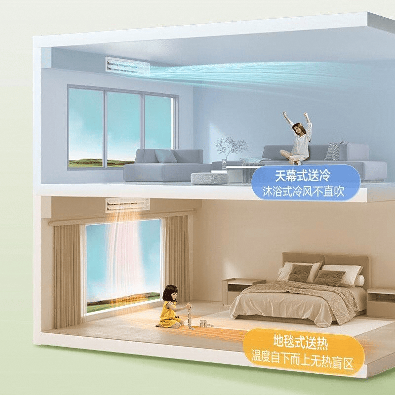 强劲的冷暖性能:独特设计能够迅速提供舒适的冷暖空气,充分满足卧室内不同季节的需求。从炎热的夏天到寒冷的冬季,都能轻松应对,为您营造一个理想的休息环境。无论何时,都能享受到稳定而舒适的室内气温,让每一次入睡都异常惬意。