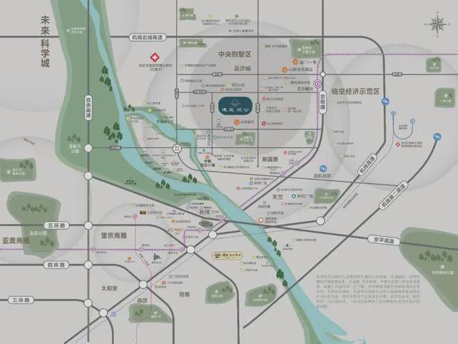 作为两区建设、首都机场临空经济示范区、首都国际人才社区的政策叠加区域,后沙峪板块未来将形成“一核四带”、“双轴双心”、“五片区”板块规划,打造绿色生活风貌区、国际化生活风貌区等6大功能风貌区,同时随着新国展以及新能源汽车基地等三大IP加持,砥定区域持续强劲崛起。